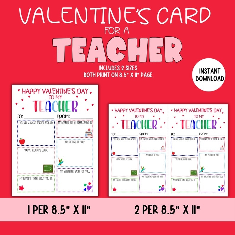 Handmade cards are always a thoughtful gesture, but for those who are short on time or prefer a professional touch, printable valentines cards are a convenient and customizable option. With a wide variety of designs and messages available online, you can easily find the perfect card to show your teacher how much they mean to you.