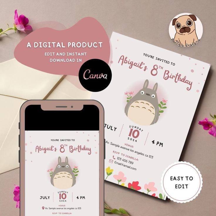 Editable Totoro Birthday Invitation Printable Totoro Invitation