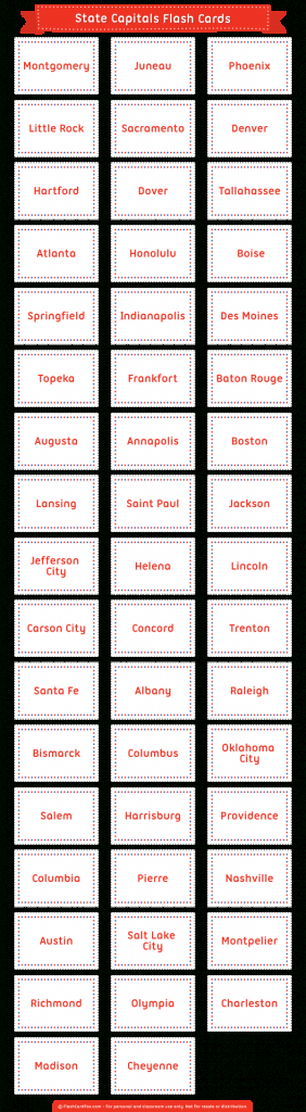 Us States And Capitals Flash Cards Printable
