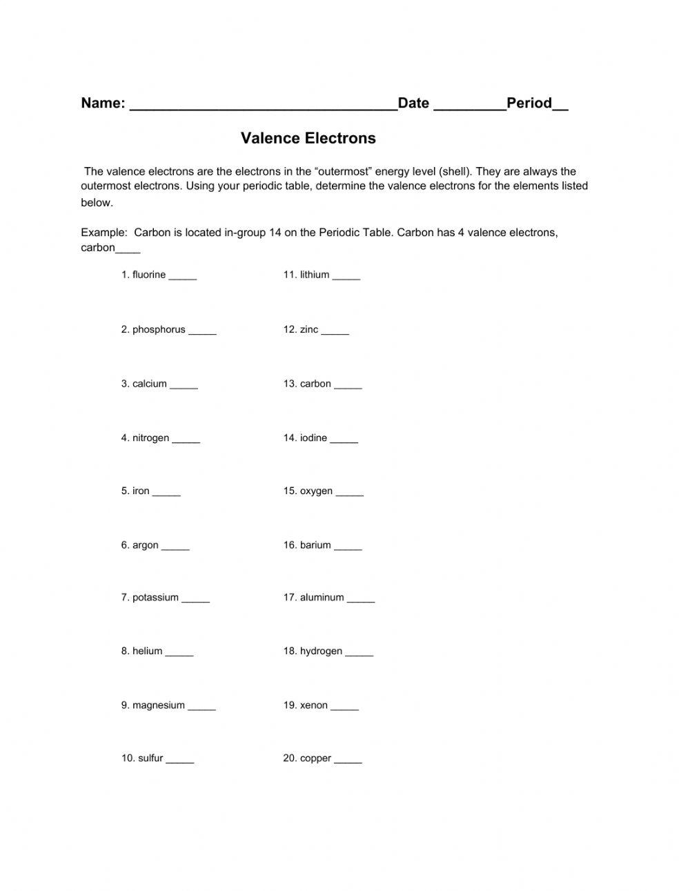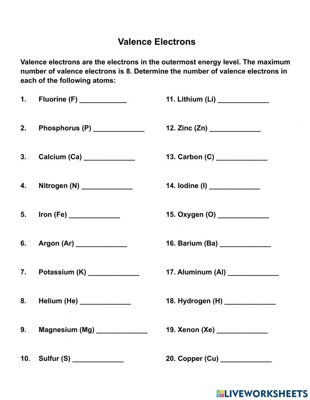 Valence Electrons Worksheet May 23, 2025September 7, 2023 by admin Download and Print valence electrons worksheet Listed below