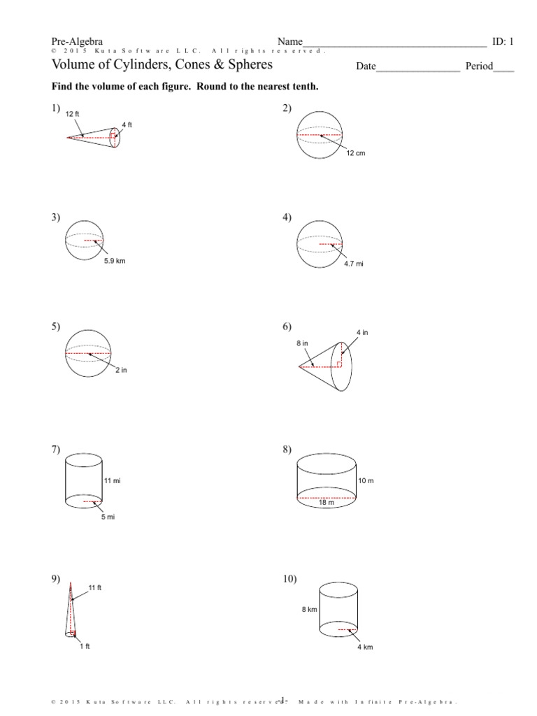 Volume Of Cylinders Cones And Spheres Worksheet PDF