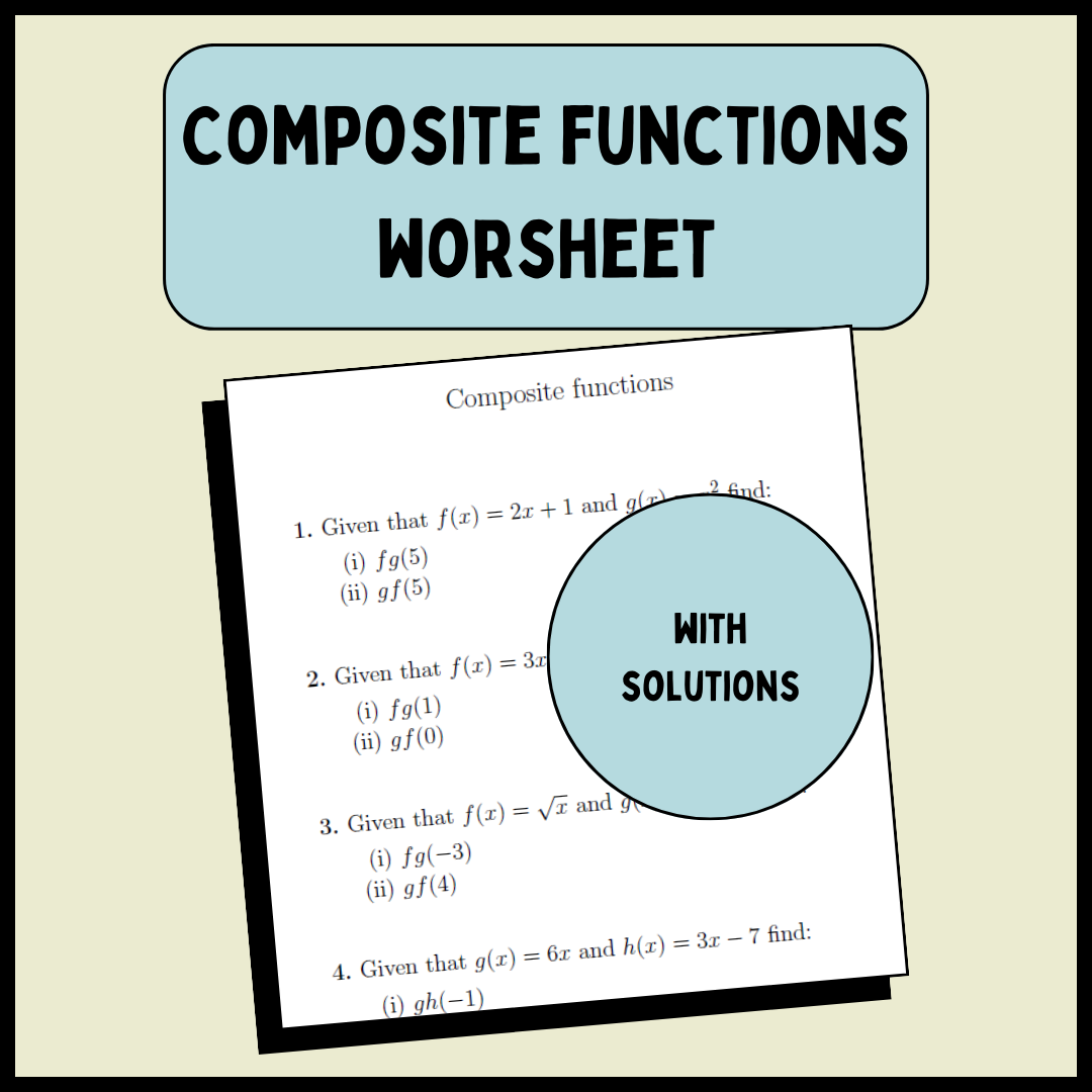 One common type of problem on a worksheet on composite functions involves finding the composition of two functions. Students are given two functions, f(x) and g(x), and are asked to find the composite function (f ∘ g)(x) or (g ∘ f)(x). This requires students to substitute one function into the other and simplify the resulting expression.