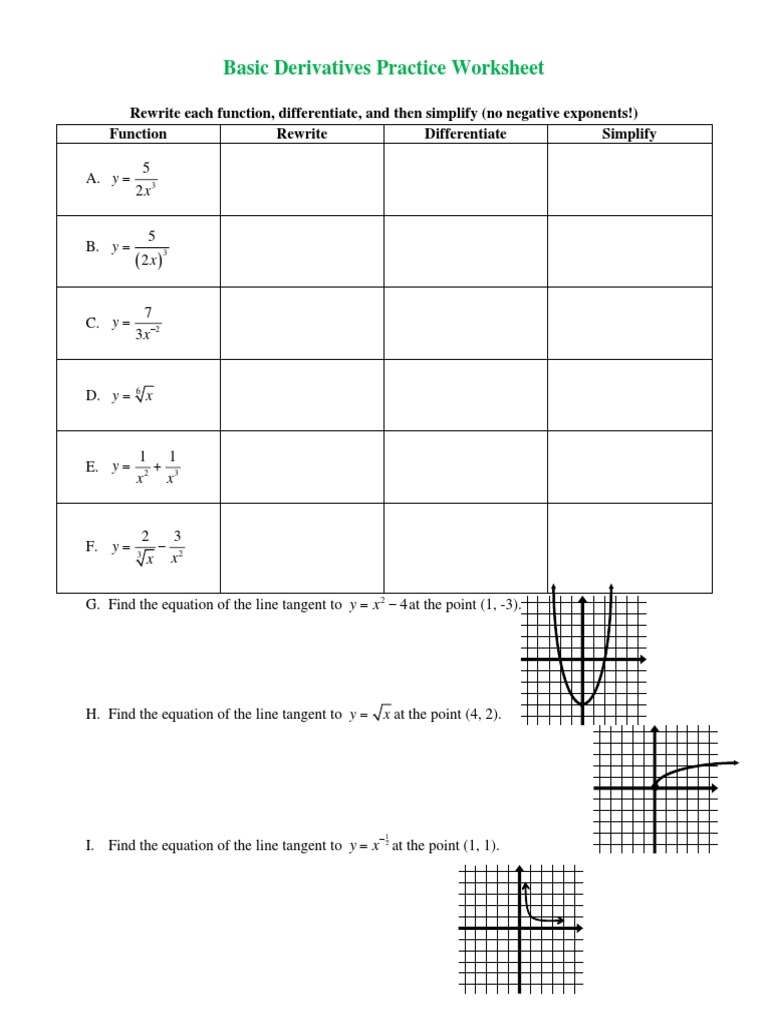 Basic Derivatives Practice Worksheet PDF Derivative Tangent