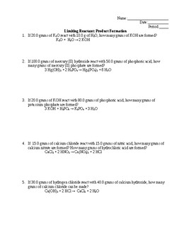 These worksheets typically include a variety of problems that require students to identify the limiting reactant in a given reaction, calculate the amount of product that can be formed, and determine the excess reactant remaining. By working through these problems, students can improve their problem-solving skills and gain confidence in their ability to apply the concept of limiting reactants.