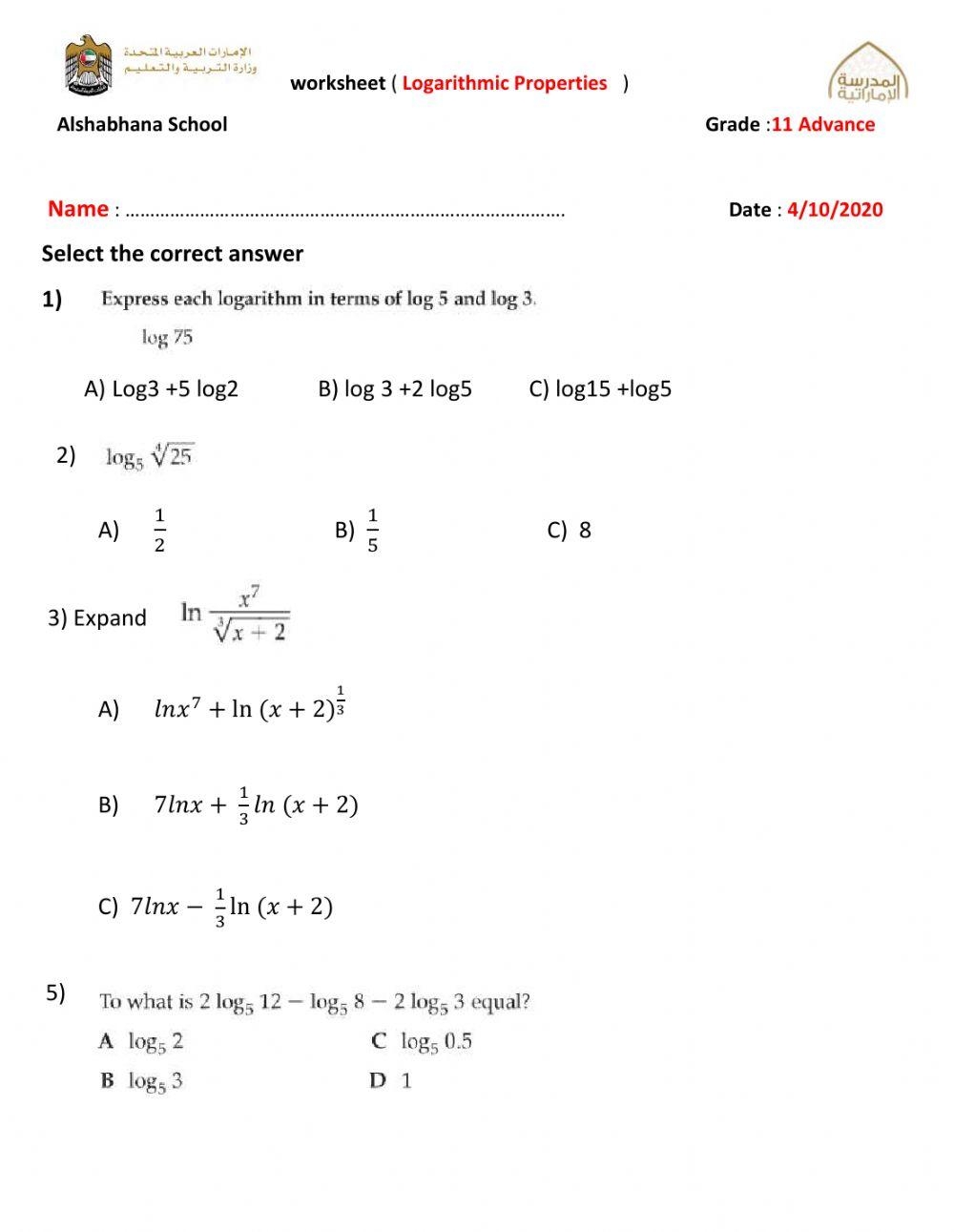 Logarithmic Properties Worksheet Live Worksheets Worksheets Library