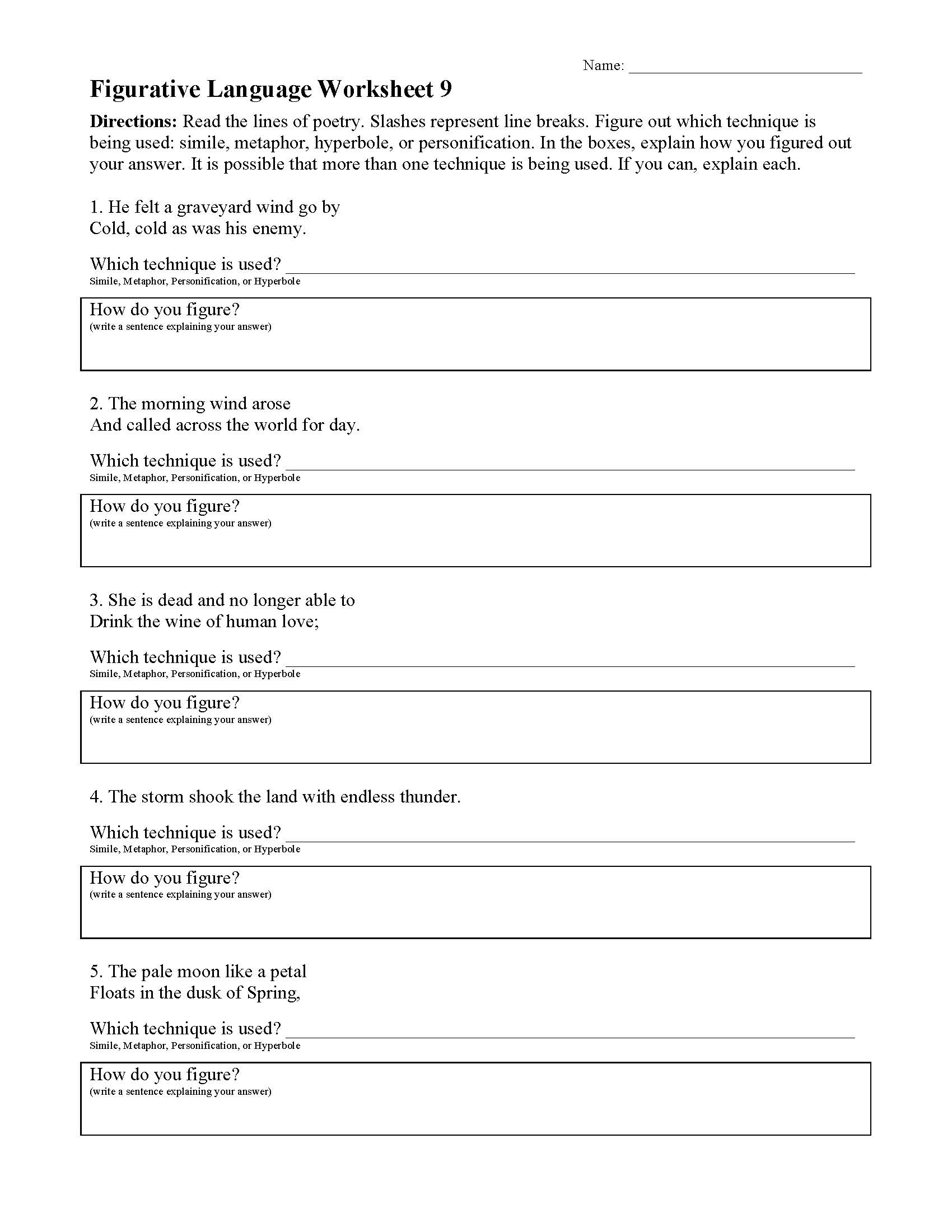 Figurative Language Worksheets 9th Grade Language Worksheets