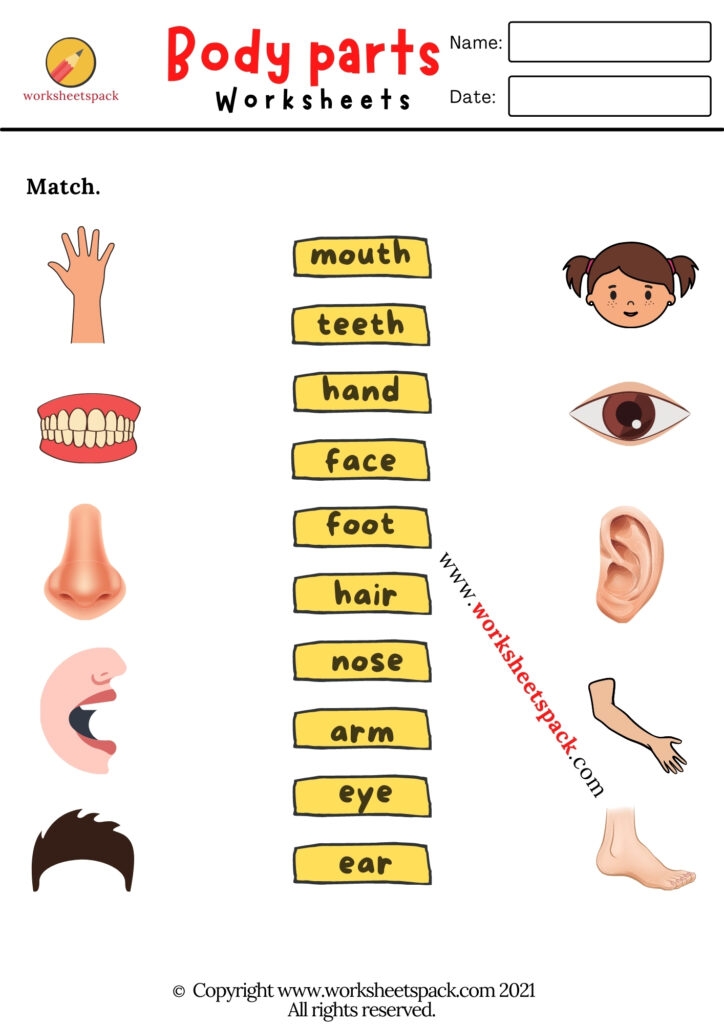 Another common activity is matching body parts to their names. Children are given a list of body parts and corresponding images. They have to match the body part to the correct name. This activity helps reinforce their understanding of the different parts of the body.